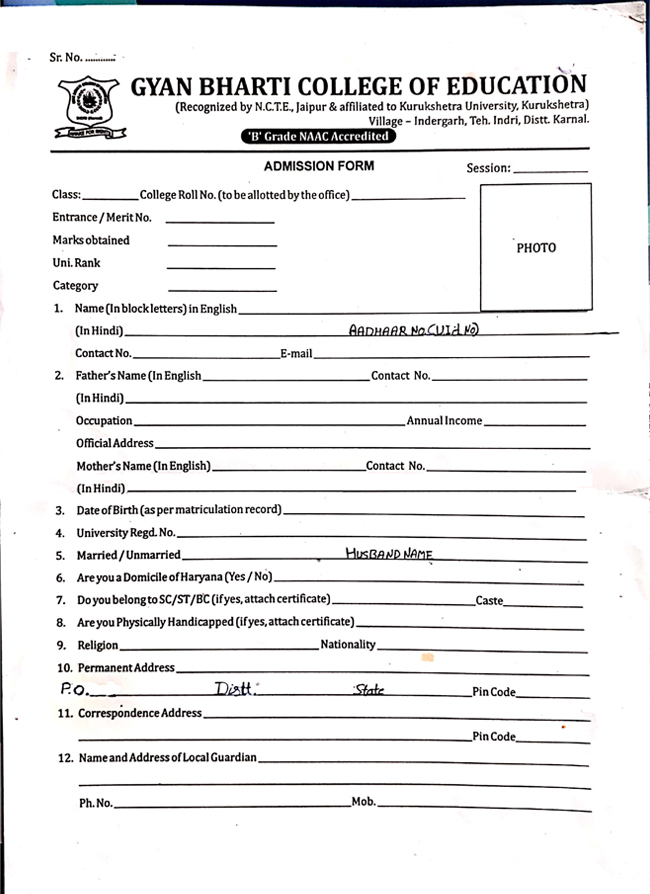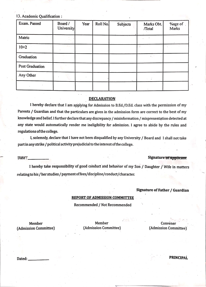 Google Form to upload B.Ed Answer-Book